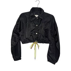 Urban Outfitters Women’s Small Crop Jacket Black Nylon Button Front Tie