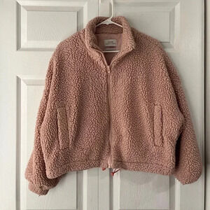 Look stylish and stay warm this winter with this Urban Outfitters Women's Teddy Coat in size Small. The short jacket with a solid pink color features a full zip and drawstring closure, making it perfect for travel, party/cocktail, casual, or workwear occasions. The outer shell material is made of 100% polyester, and the lining material is also 100% polyester, making it lightweight and comfortable to wear.