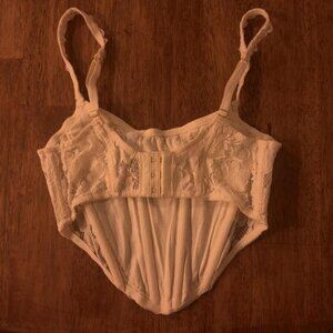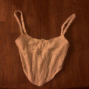 Lacey cream corset top with gold accents, so cutesie I just haven't worn it in a while so she must go to a new home
