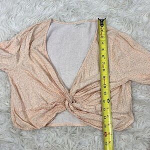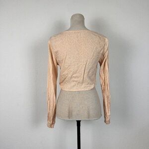 Urban Outfitters Women’s Peach Floral Twist Front Crop Top Long Sleeve Blouse M
