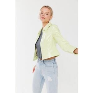 Urban Outfitters Cropped Pale Neon Yellow Vegan Leather Jacket