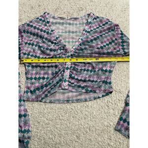 Urban Outfitters Y2K Mesh Cropped Ruched Button Up Top Women's Size Medium Purple Blue
