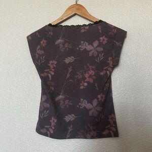 Urban Outfitters Y2k Mini Shirt Bow Lace Brown Pink Large Lace Cropped