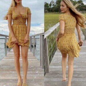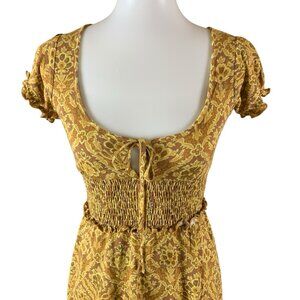 Urban Outfitters Yellow Dress Small Smocked Boho Floral Puff Sleeve Cottagecore