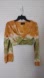 EUC, super cute, super cool cropped tie dyed sweater, dark mustard yellow, cream, pale green & pale purplish pink colors, big sleeves, visible seams, cowl neck like style, , drapes at front.