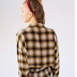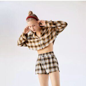 Urban Outfitters Out From Under Yellow Plaid Crop Button Up Blouse SMALL never worn