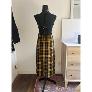 Chic plaid midi dress. Features button-down front. Perfect for casual outings.