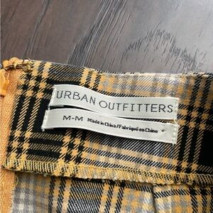 Urban Outfitters Yellow Plaid Mini Skirt Size Medium Split Slit Side Academia
