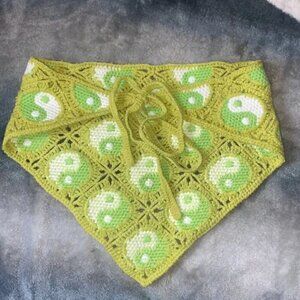 Urban Outfitters Yin Yang Icon Crochet Hair Bandanna Lime Green Knit Scarf Top