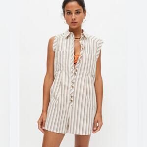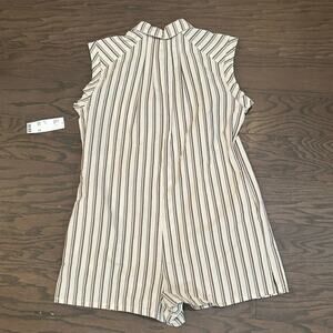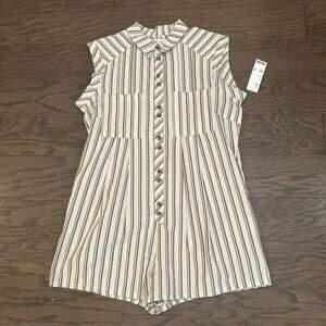 Urban Outfitters Zoey Workwear Romper Striped Ivory And Brown Size Medium NEW