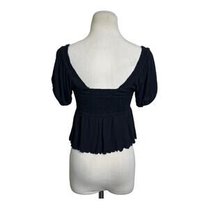 Urban Outfitters black Cropped Smocked Puff short Sleeves Peasant Top size Small