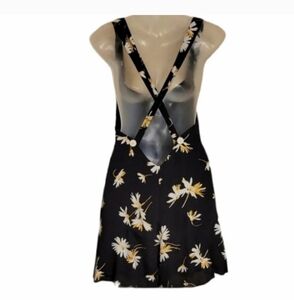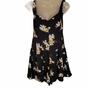 Urban Outfitters black Motif flower romper, new with tags.. has side zipper and button criss crosses at the back, total length is adjustable with extra button, see pictures for approx measurements.