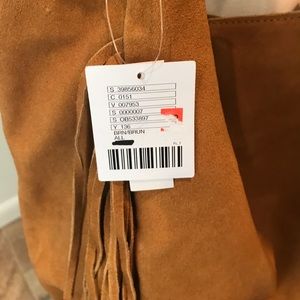 Brand new with tag! Give your daily style some bohemian-influenced flash with this soft + slouchy suede shoulder bag, from Urban Outfitters. Flanked by rows of fringe to add major movement featuring a spacious main compartment with a magnetic snap closure + thick cut shoulder strap.