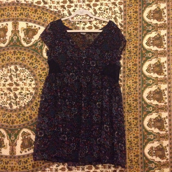 This super cute urban outfitters dress has mesh on the sides so you can see you waist in it. It's a large.