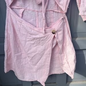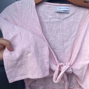 Urban Outfitters light pink short sleeve romper with mid cut off, size 2