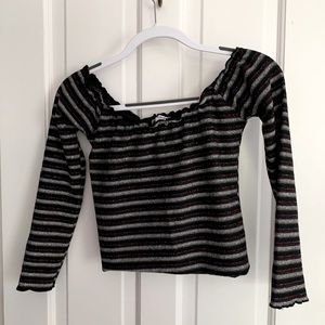 striped with a lettuce edge top from Urban. has sparkly threading so it would be cute for the holidays! size medium but would also fit a small
