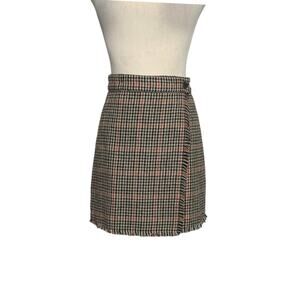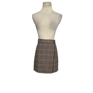 Urban Outfitters orange black houndstooth wrap mini skirt size Small