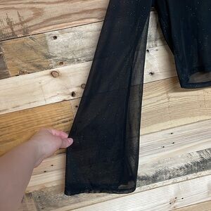 Elegant black sheer top with long sleeves, perfect for a night out. The subtle sparkle adds a touch of glamour.