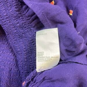 Purple mini skirt with orange floral print features a bodycon style stretch with the smocking.