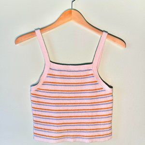 bright summer hater crop top, white with orange and blue stripes (perfect condition)