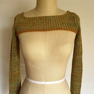Urban Outfitters super cropped -shrug fitted sweater, lattice knit sz S