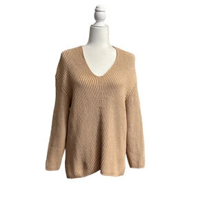 Urban Outfitters tan color v-neck pull over knit ribbed sweater classic size XS