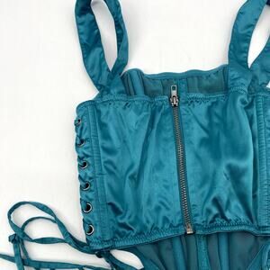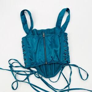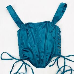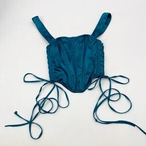 Urban Outfitters teal satin boned corset top
