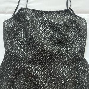 Urban Outfitters black textured mini dress. Double tie closure in back. Adjustable spaghetti straps. Curve-skimming fit. Material 90% poly and 10% spandex.