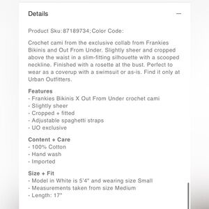 Urban Outfitters x Frankie’s Bikinis Colette Crochet Cami Size M NWOT