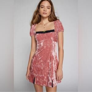 Kimchi Blue mini dress in a luxe velvet fabric. Cut short in a slim-fit with puffy sleeves, a square neckline and an empire waist. Finished with a cutout and an adjustable tie at the back. Only at UO.
