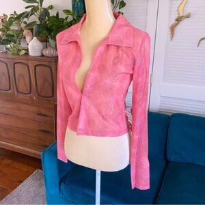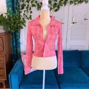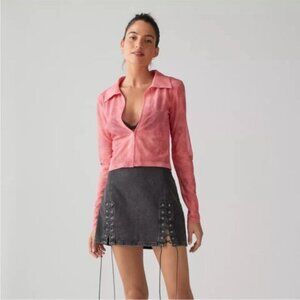 Urban Outfitters x Lioness | Anything For Love Printed Flyaway Top Mesh Pink New