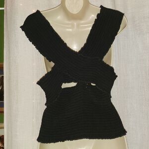 This sleek black crop top from Urban Outfitters features a smocked, off-the-shoulder design that offers a chic and form-fitting silhouette. The sleeveless style and cropped hem add a trendy touch, making it a versatile piece for any casual outing.
