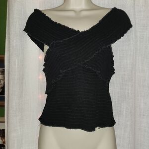 Urban Outfitters Black Smocked Off-Shoulder Crop Top