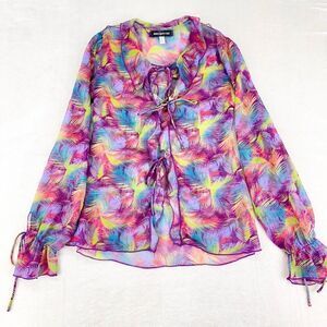 Urban Outfitters Blouse Women’s S Misty Gauze Sheer Pink Purple Tie Front