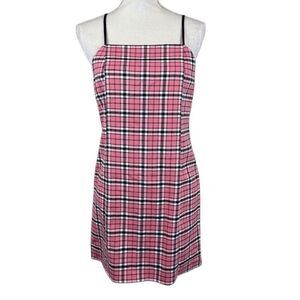Urban Outfitters Pink and Black Plaid Mini Dress Sleeveless Back Zip Size Small