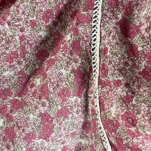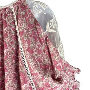 Urban Outfitters Women's Floral Blouse Mesh Sleeve Top Pleated Pink Rose Small