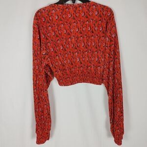 Urban Outfitters Women's Red Dainty Floral Print Smocked Cropped Top Size XS Faux Wrap Longsleeve. Condition is "Pre-owned". Shipped with USPS
