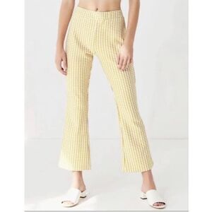 Urban Outfitters Yellow White Texture Checked Pattern Flare Leg Retro Pants