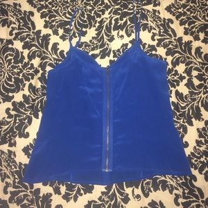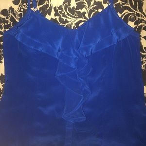 100% silk!!! Royal blue tank with ruffles on the front, adjustable straps, and exposed brass zipper in the back. From urban outfitters, the silence and noise brand. Size extra small.