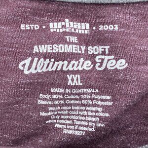 The tag inside this shirt claims that it is "awesomely soft". I don't know if I'd go that far, but it's pretty soft. The body is %90 cotton and %10 polyester while the sleeves are %50 cotton and %50 polyester. I don't know why the blend changed from shirt to sleeve. But, it probably doesn't matter, it's just a shirt!
