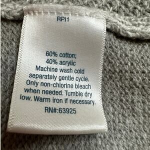 Good condition, soft thicker knit material. Still fairly lightweight. Warm layer.