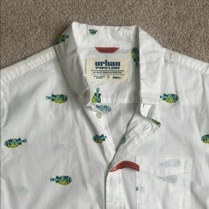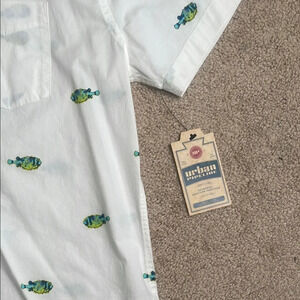 Embrace a laid-back vibe with this Urban Pipeline shirt, featuring a refreshing green and white color scheme. The casual button-down design is adorned with a playful tropical pattern, perfect for warm weather outings. Its lightweight fabric ensures you stay cool and comfortable throughout the day.