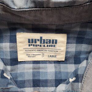 Urban Pipeline Long Sleeve Button Down Plaid Shirt 1 Pocket Blue Men Sz L