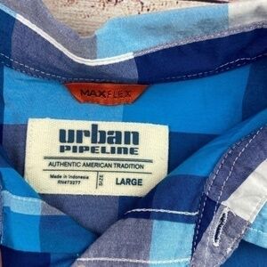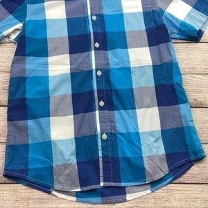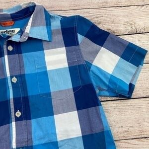 Urban Pipeline Max Flex Top Boys Large Blue and White Short Sleeve Button Down
