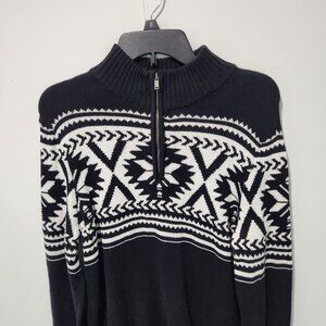Urban Pipeline Men's Black and White Aztec Style Detail on the front and back of the sweater. Long Sleeve Pullover Sweater. 1/4 Zip on the front. Ribbing on the cuffs on the sleeves and on the hem. This sweater is in excellent condition.