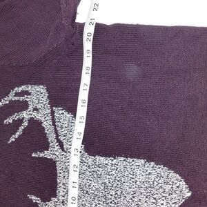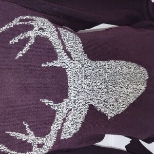 Stay cozy and stylish with this burgundy sweater featuring a charming deer design. Perfect for adding a touch of elegance to your wardrobe. (D)