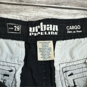 Urban Pipeline Men's Faded Black Cargo Shorts Button Pockets 29 Knee Length Zip