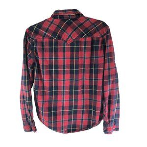 Urban Pipeline Mens Flannel Shirt Button Down Chest Pockets Cotton Plaid Red M