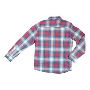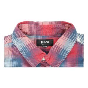 Urban Pipeline Men's Plaid Long Sleeve Shirt is a casual button-up shirt made of 100% cotton. The shirt features a collared neckline with a button-down collar style and a button closure. The shirt is designed with a regular fit and is available in size medium. The shirt is accented with buttons and has a plaid pattern in pink and multicolor. The shirt is manufactured in Bangladesh and is perfect for casual occasions.