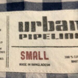 Urban Pipeline Men's Shirt Sz S Blue White Check Button Front Long Sleeve EUC